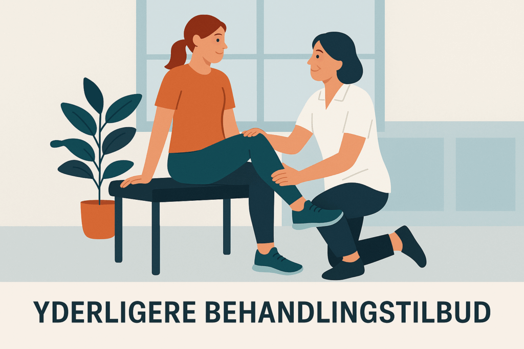 Her kan du læse mere om vores yderligere Behandlingstilbud, som fx. vederlagsfri fysioterapi, tværfaglig samarbejde, individuel behandling og holdtræning. LÆS MERE HER.